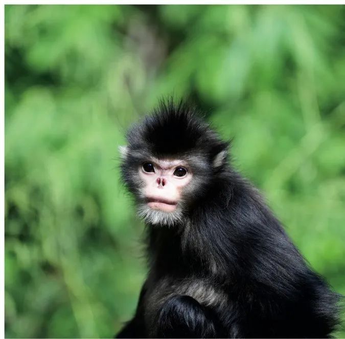我们的毛发配色和国宝大熊猫相似,通体黑色,耳朵、脸颊有少量的白毛,白色的耳羽尤为明显,所以我们大概率也拍不了彩色照片。而最具特征的就是我们丰满性感的嘴唇和上翘的鼻子,但也正因为这朝天鼻,也成了我们的负担,因为下雨的时候雨水就会流进鼻孔,让我们忍不住打喷嚏。所以下雨的时候如果遇到我们,就会看到我们排排坐地把头埋在两膝之间,场面多少有点搞笑。